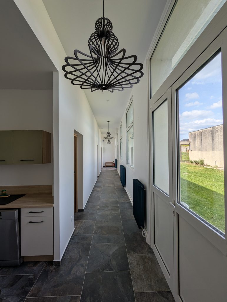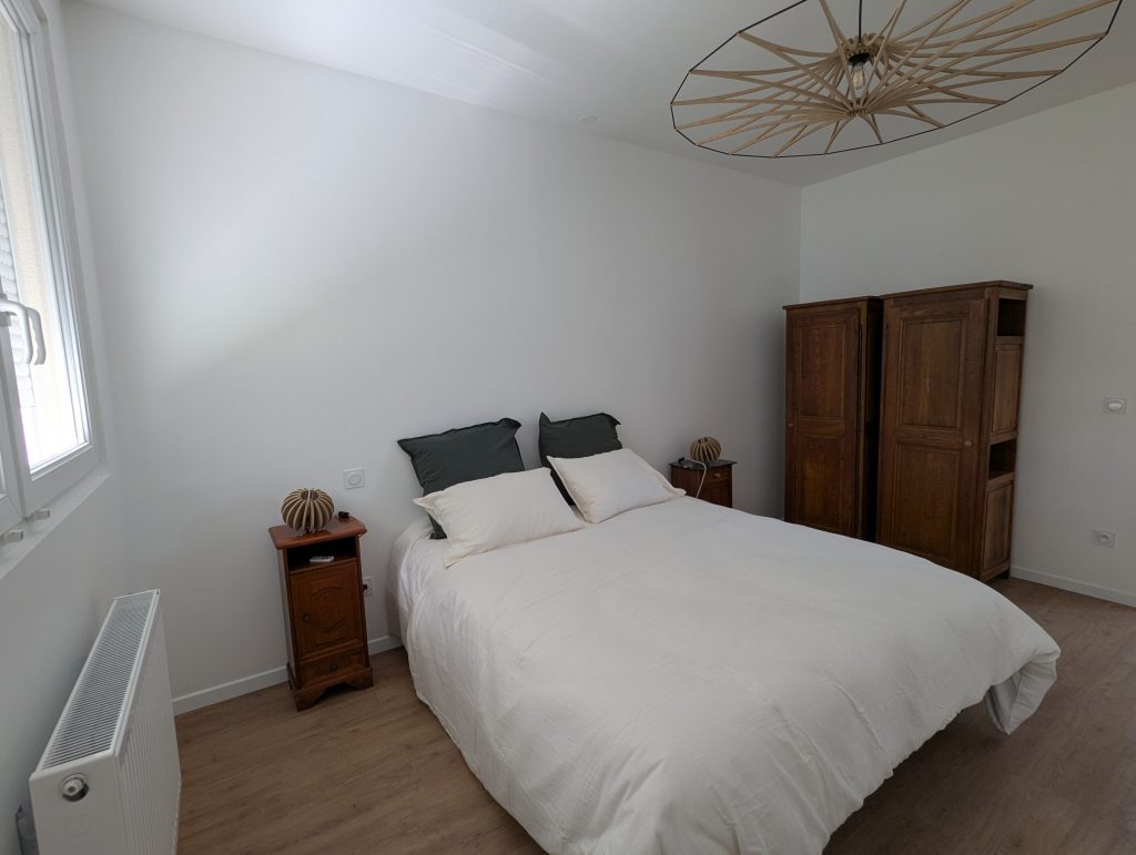 Le Préau is a three-bedroom cottage with wheelchair access. Formerly a covered courtyard for children attending summer camp, we have transformed it into a charming cottage. It consists of three bedrooms, each with its own bathroom, and a kitchen, dining room, and living room, all wheelchair accessible.