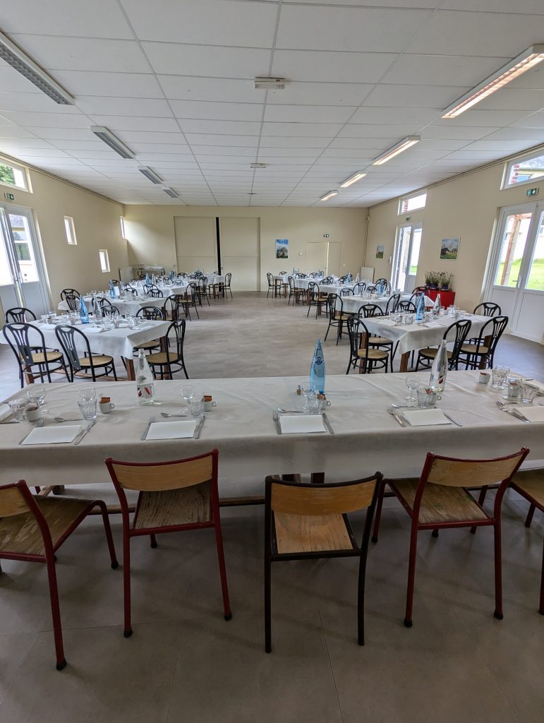 Tables, chaise et vaisselles fournis jusqu’à 70 personnes, vous avez aussi a votre disposition une chambre froide pour stocker vos boissons et repas, deux congélateurs, une plaque chauffante et un four.